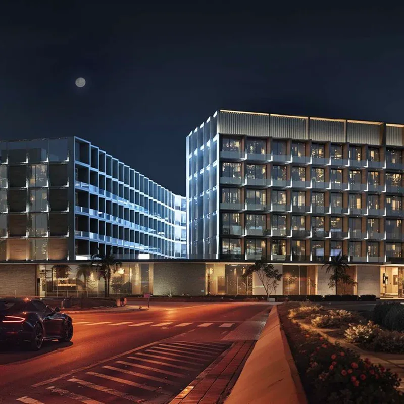 Binghatti HillCrest is a thoughtfully designed residential and retail development sprawled across 11,090.47 sqm (approximately 119,377 sq. ft.) of prime land. The project features a B + G + 4 residential structure with a rooftop, offering a harmonious blend of modern living and convenience. With a total of 322 residential units, including 180 studio apartments, 138 one-bedroom apartments, and 4 two-bedroom apartments, it caters to a diverse range of lifestyles. The ground floor is dedicated to 28 retail shops, providing a vibrant community hub and seamless access to everyday essentials. Binghatti HillCrest embodies a lifestyle of comfort, connectivity, and contemporary urban living.